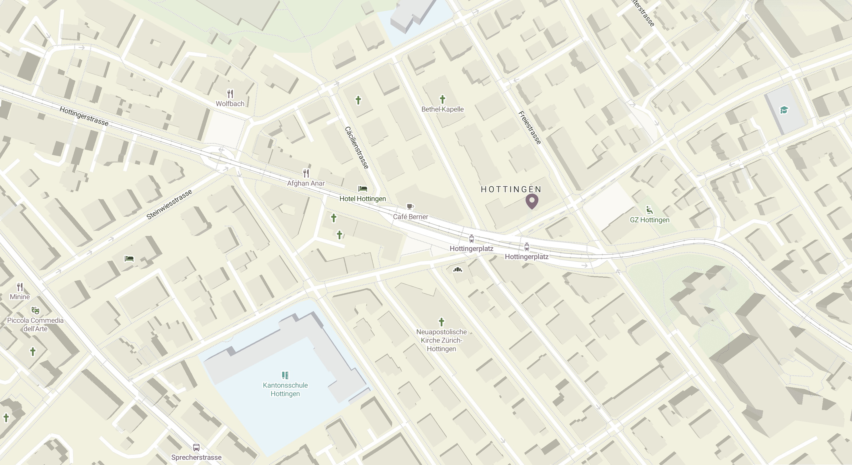 Von der Tramhaltestelle Hottingerplatz (Linien 3 & 8) erreichen Sie uns in weniger als einer Minute – die Galerie liegt praktisch direkt gegenüber.
